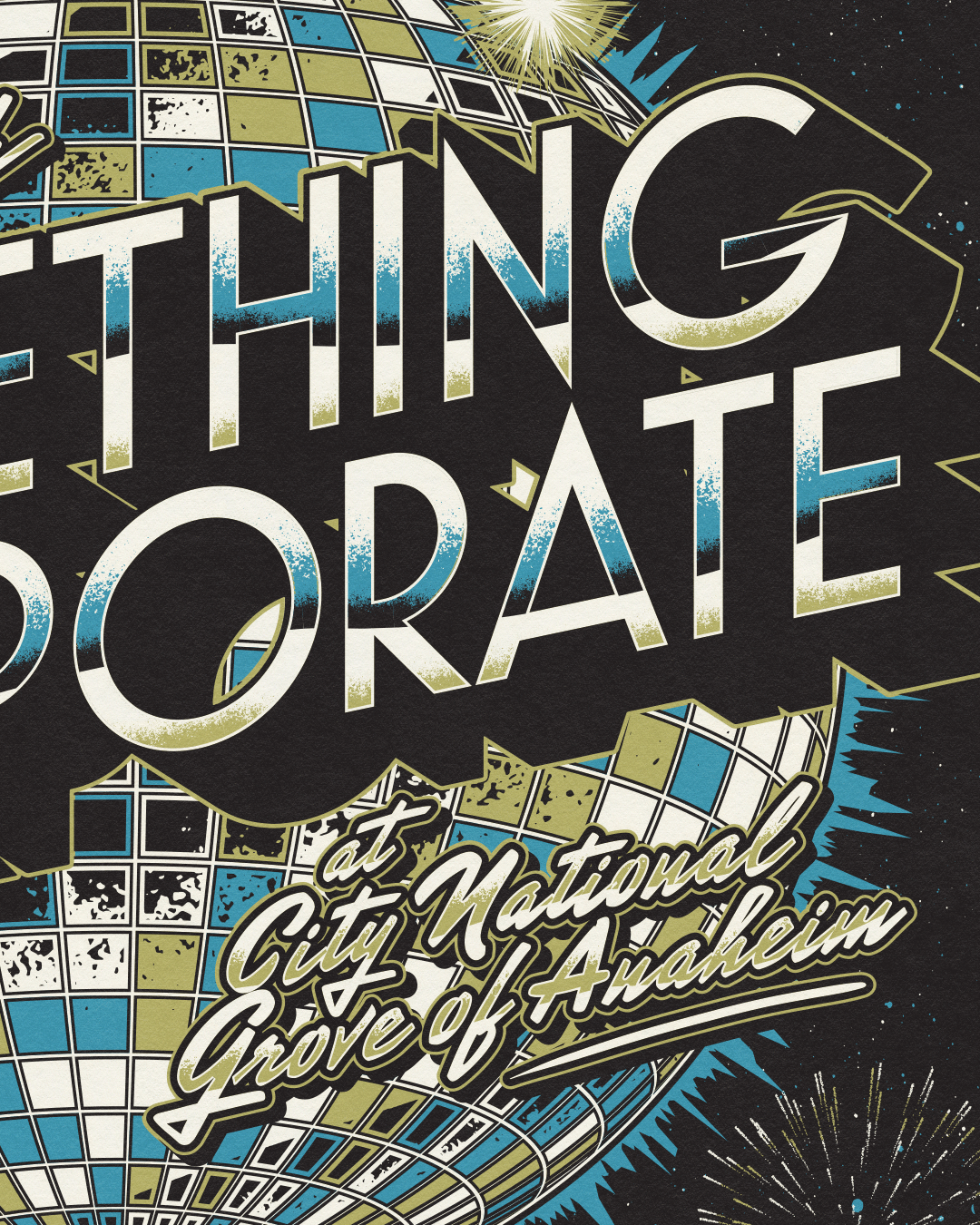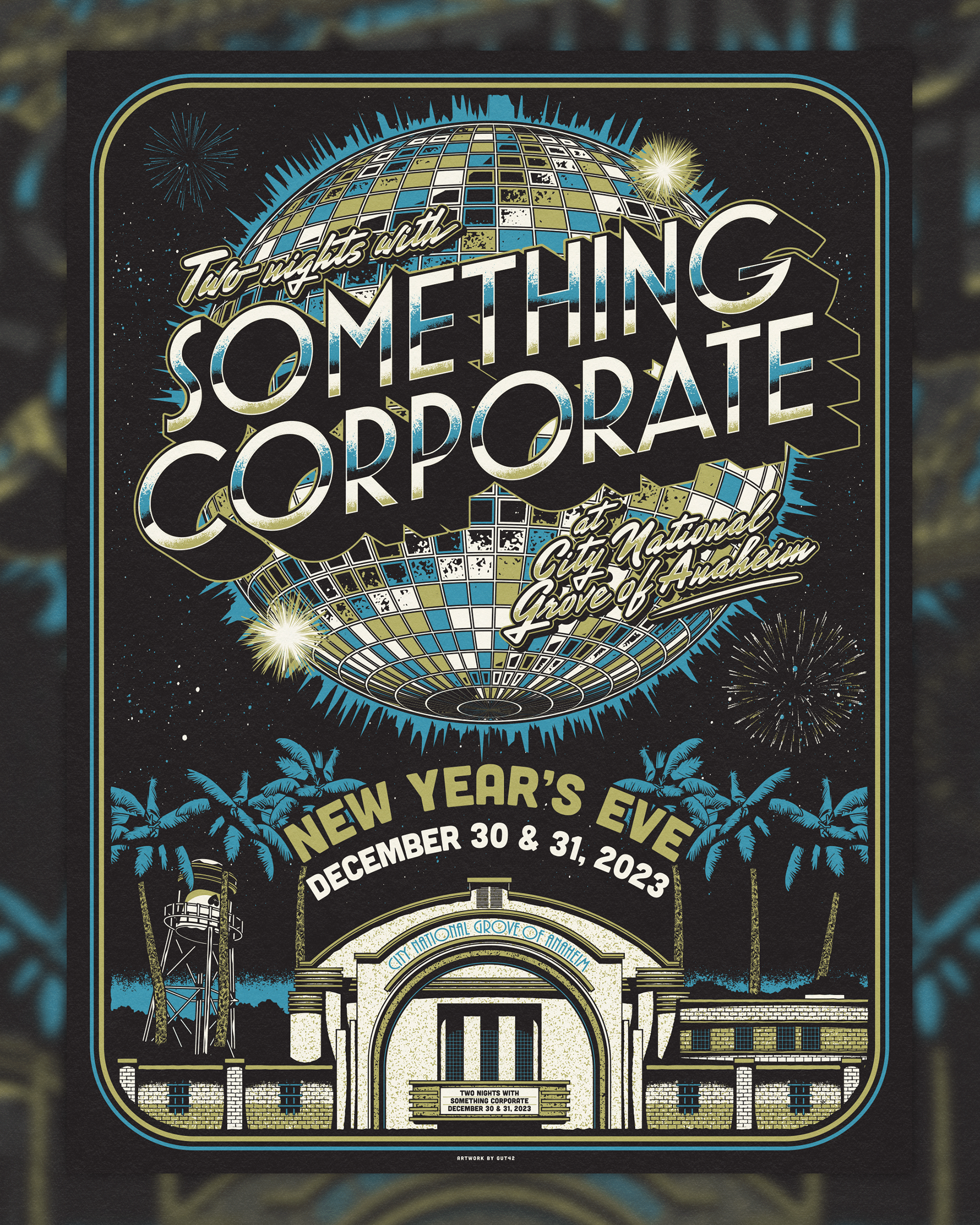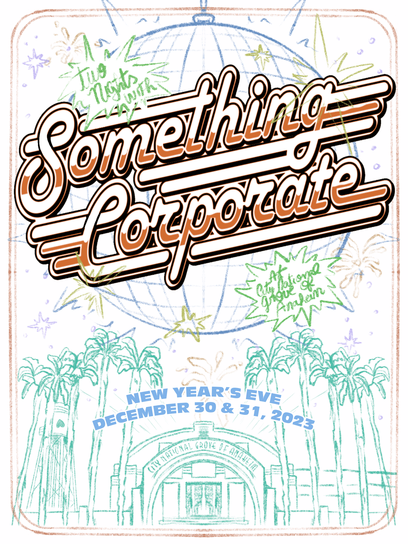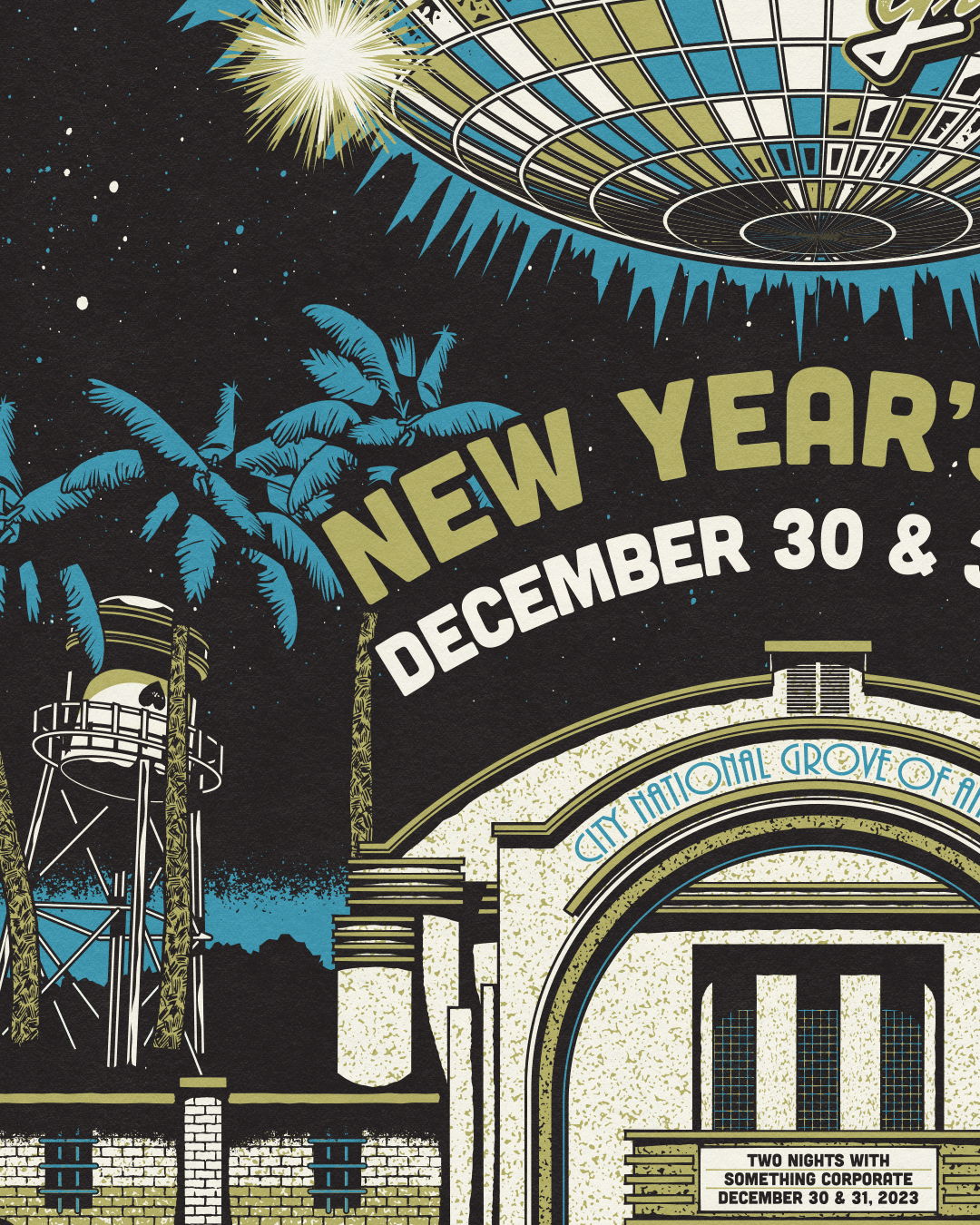 Poster design for Something Corporate's New Year's Eve shows at the City National Grove of Anaheim.